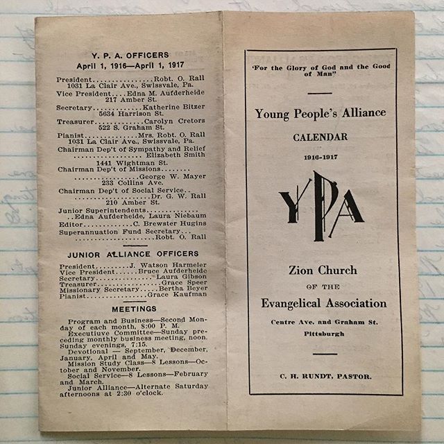 Another Albright Artifact. Young People’s Alliance calendar 1916-1917. The building where Albright is located today opened in 1906 as Zion Church. #albrightpgh Friends of Albright photos August 13, 2015August 13, 2015 1 Minute via Instagram http://ift.tt/1IIFUAi Share this: Click to share on X (Opens in new window) X Click to share on Facebook (Opens in new window) Facebook Like Loading... Related Published August 13, 2015August 13, 2015