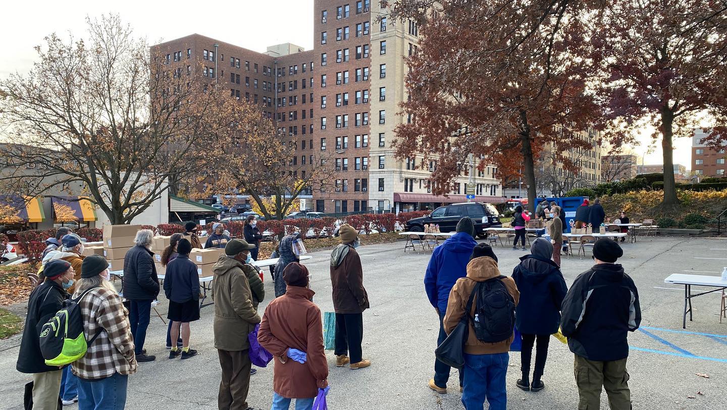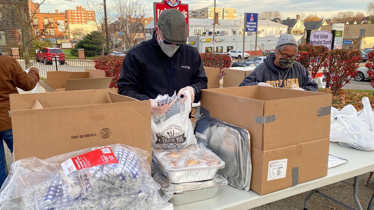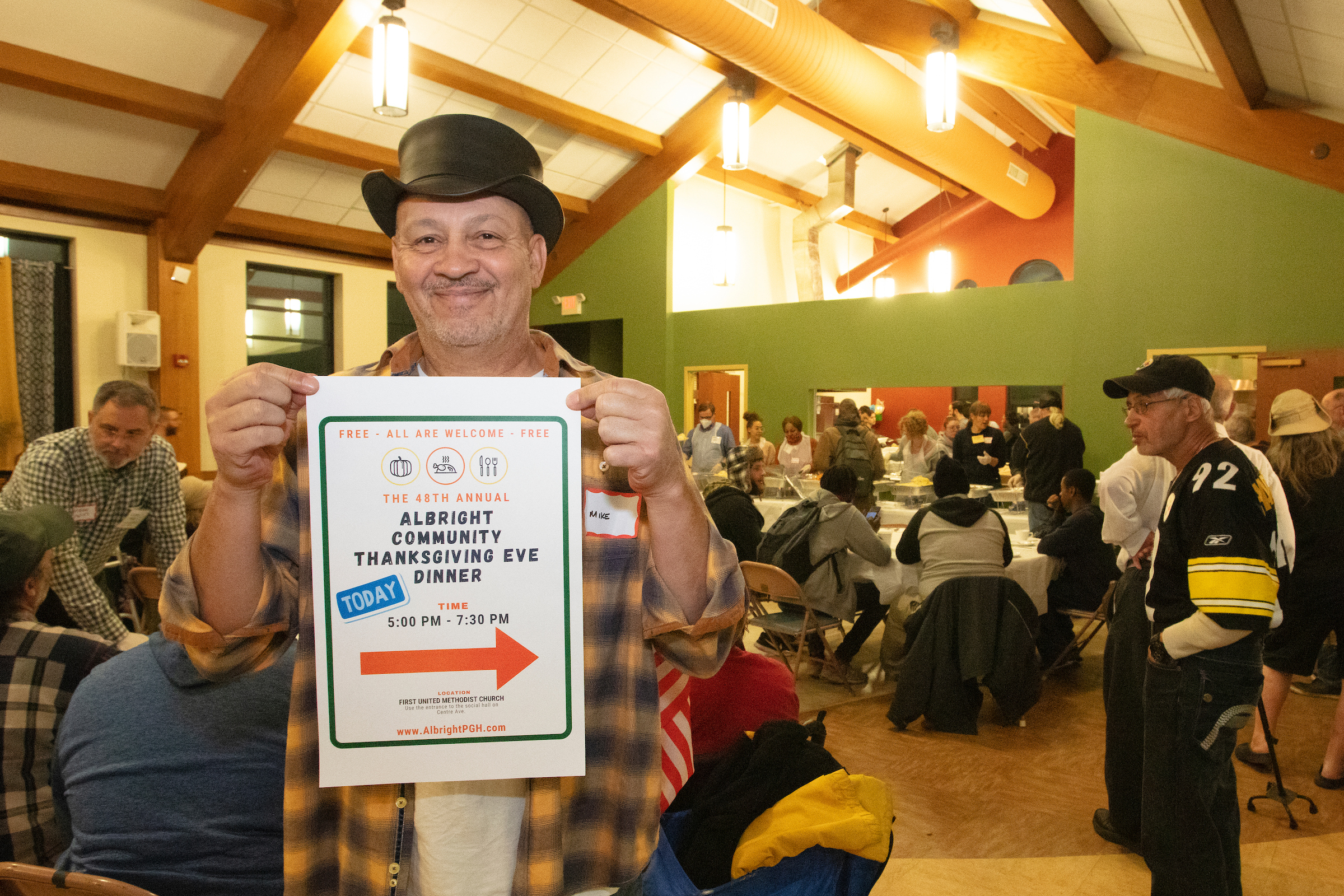The Albright Thanksgiving Eve dinner is a labor of love. Each year, over 100 volunteers from across Pittsburgh come together to help cook and serve a hot turkey dinner.